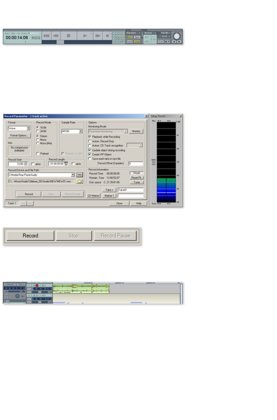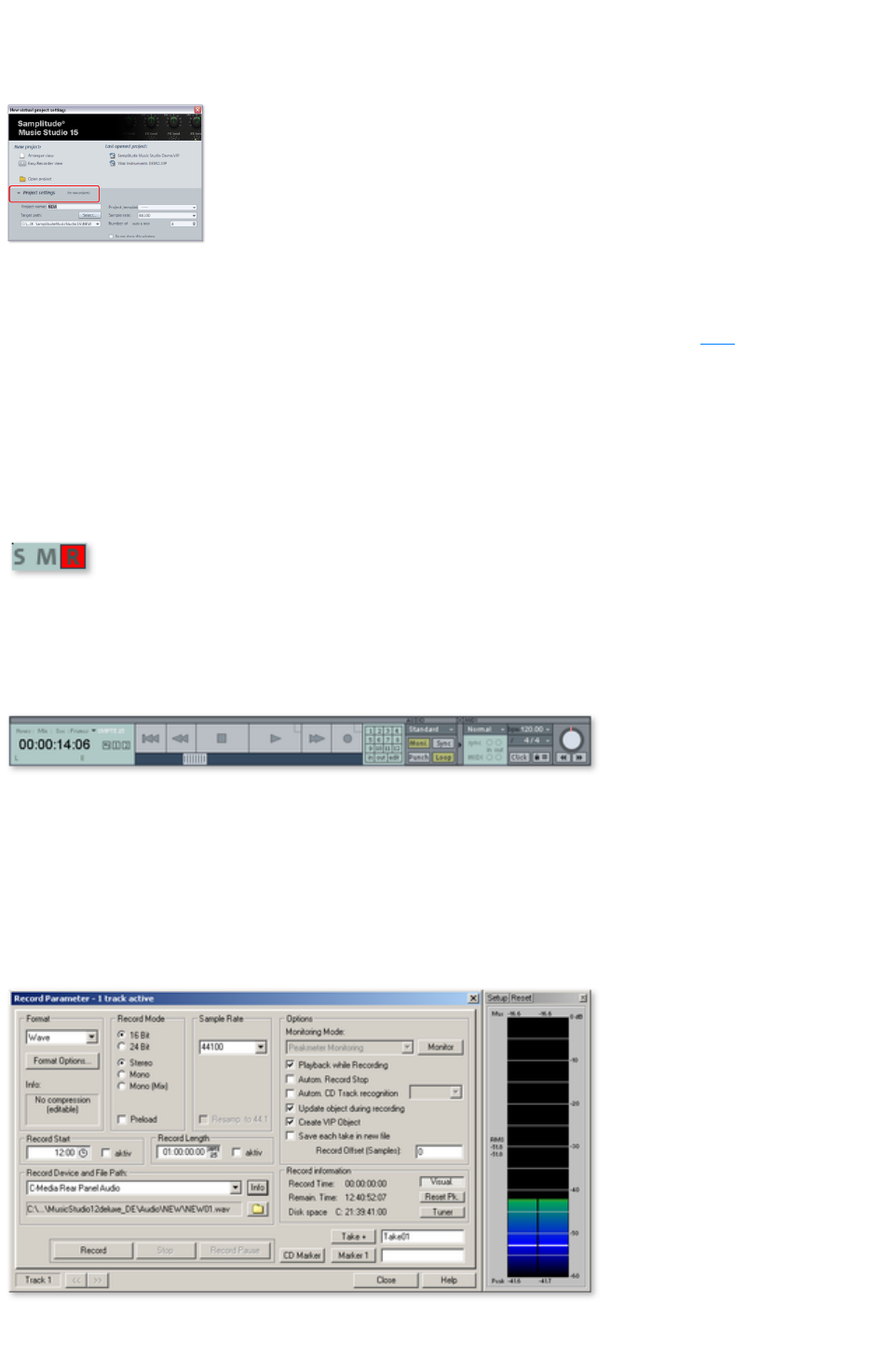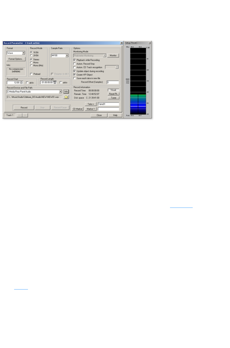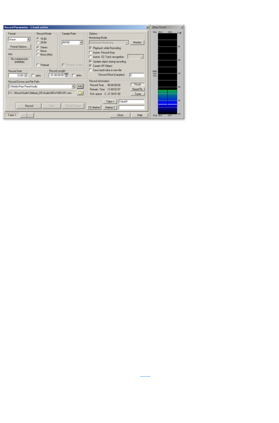 Here you can choose between stereo and mono, recording into the RAM via RAM wave projects, or