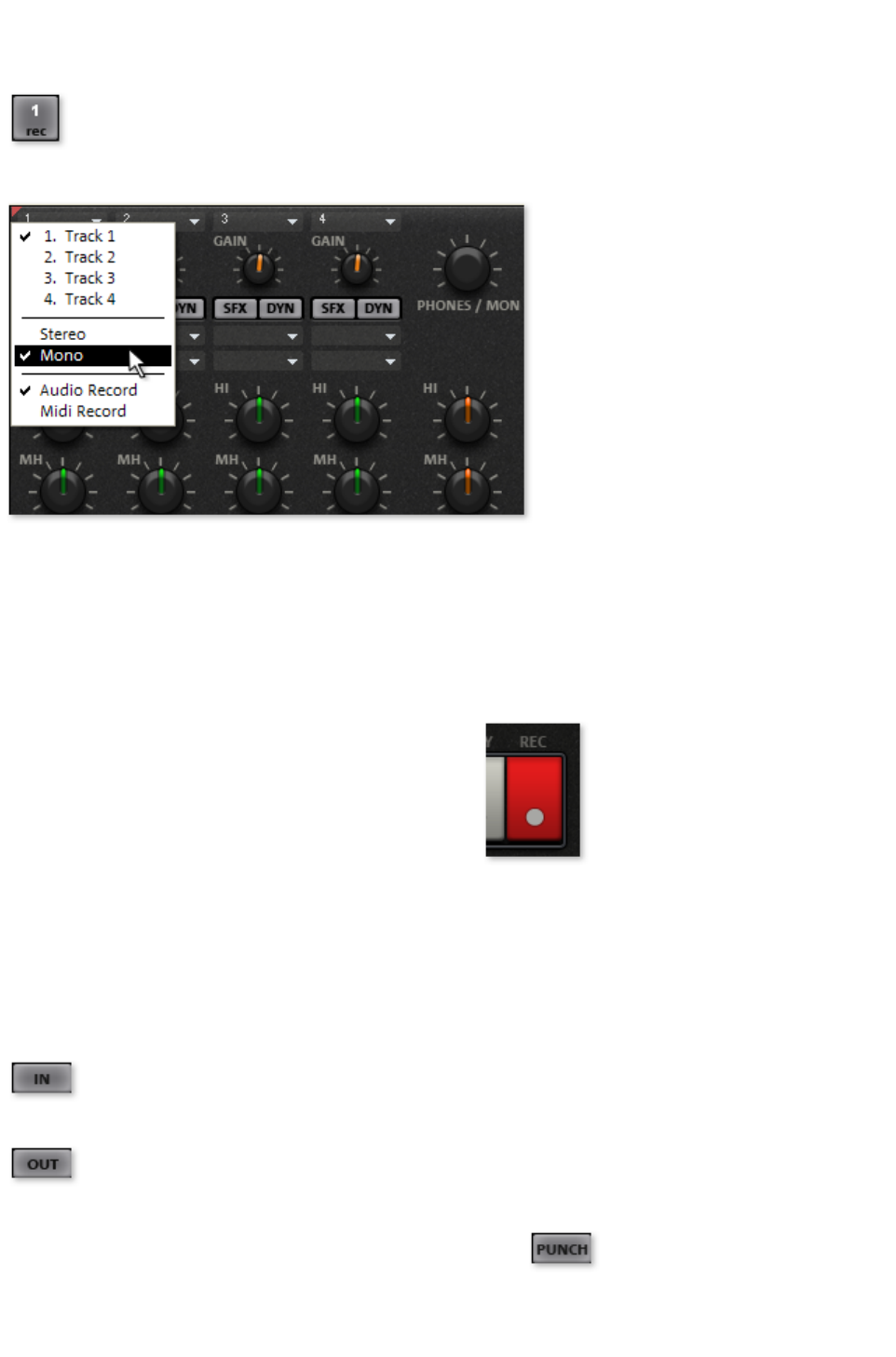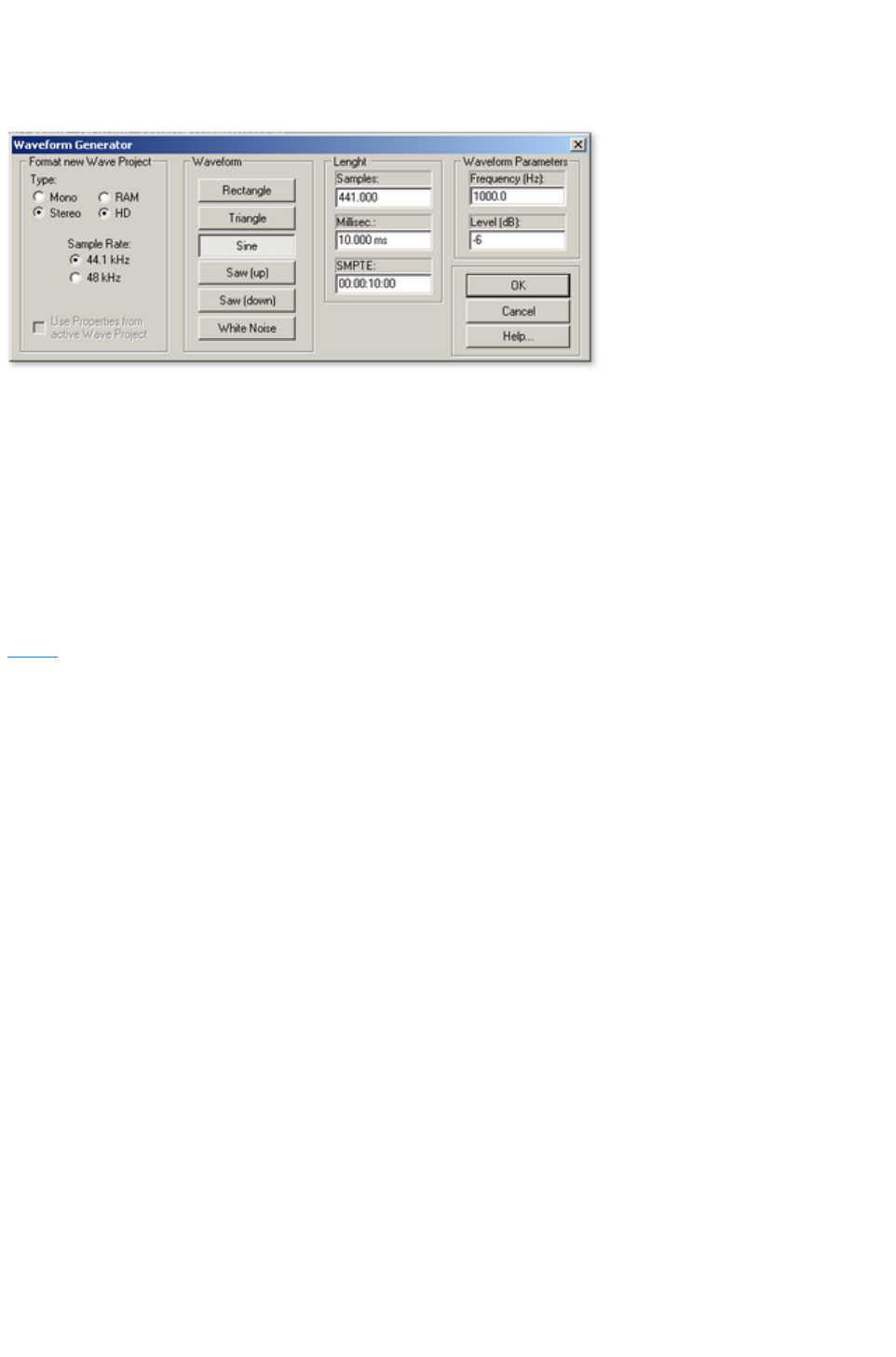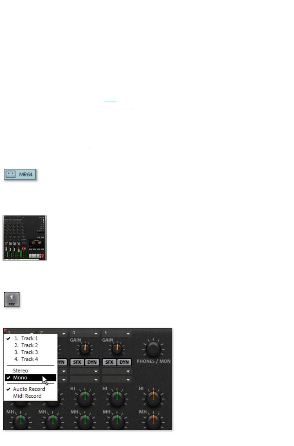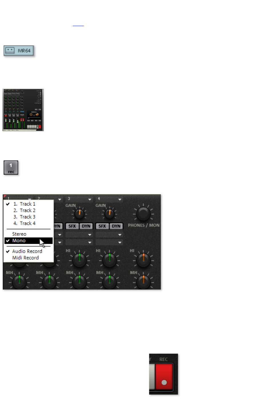 Here you can choose between stereo and mono, recording into the RAM via RAM wave projects, or