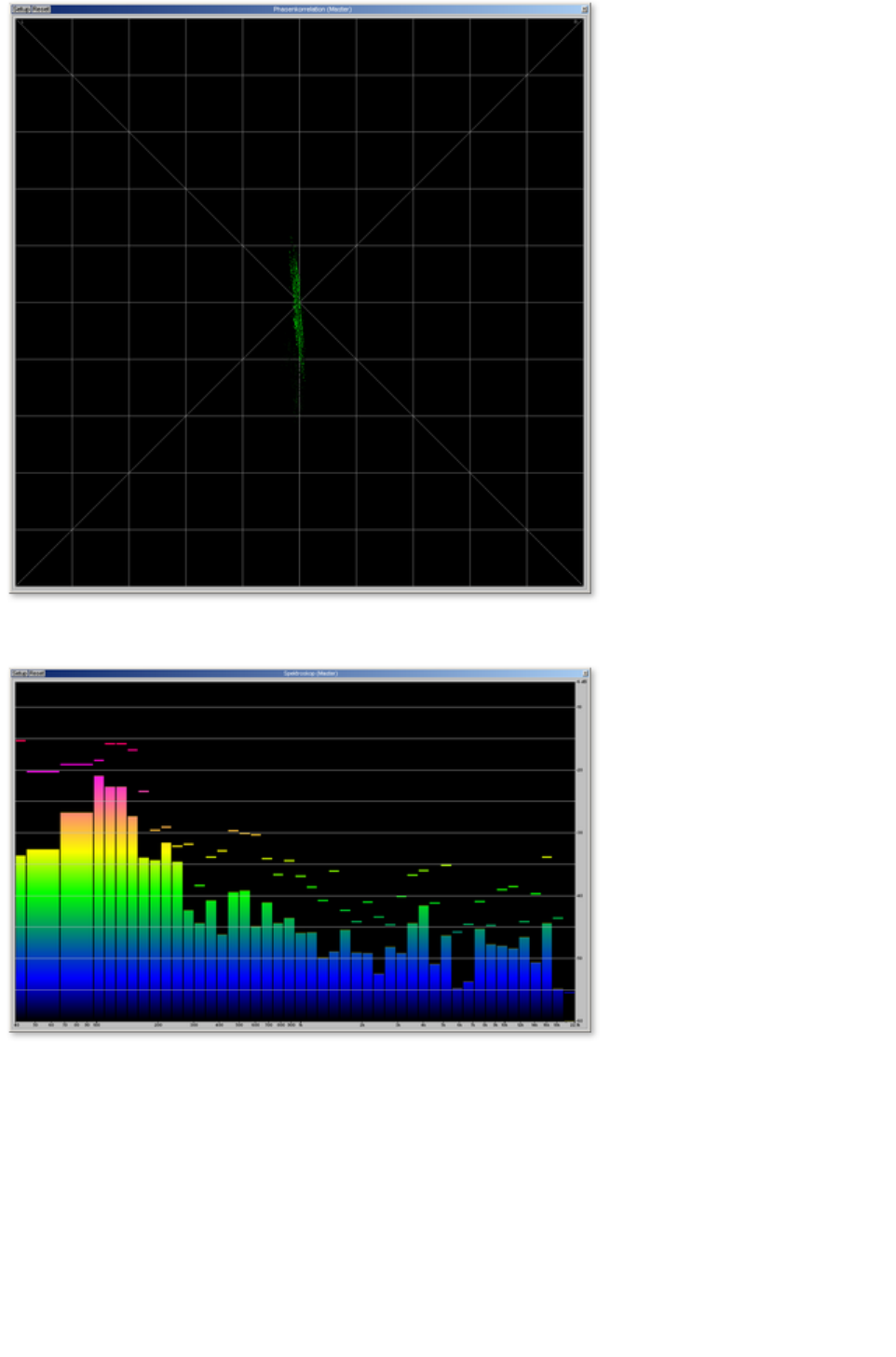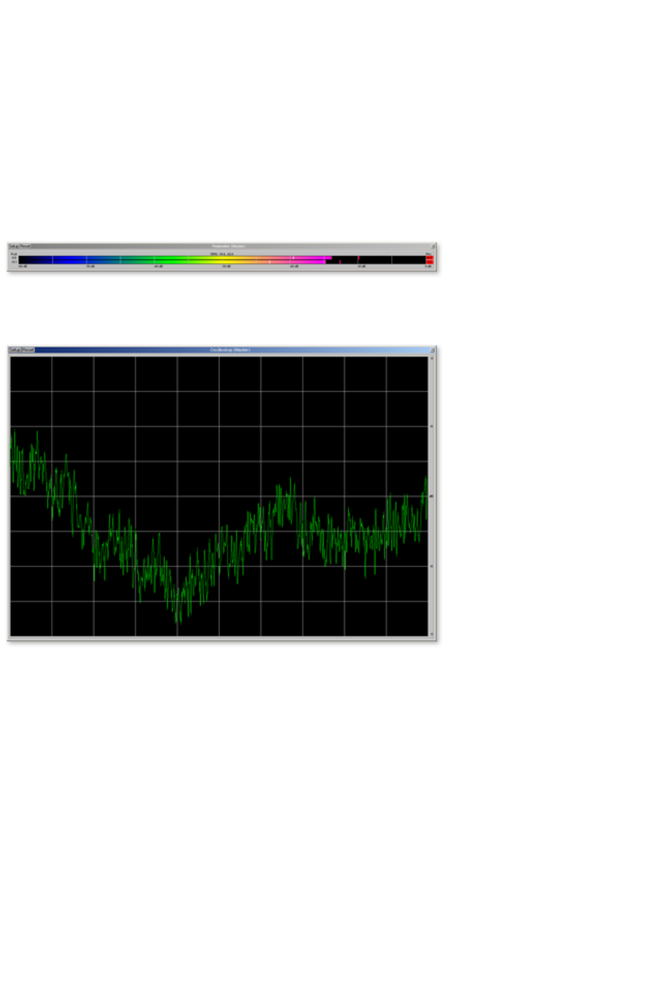 Here you can open the oscillograph or phase correlator. The oscillograph displays the wave form at the