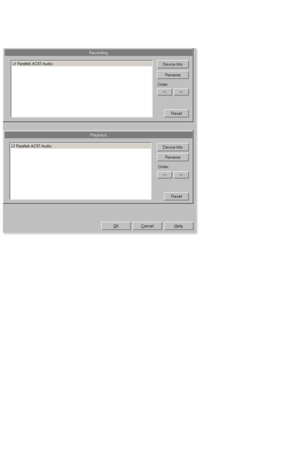 Here you can access a dialog that provides information on the sound card properties. If your sound card