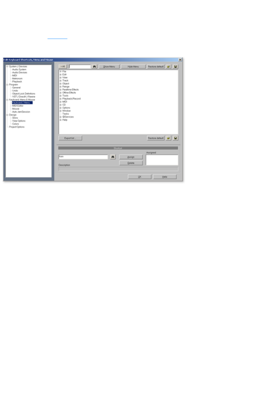 - Keyboard commands and mouse-wheel assignments