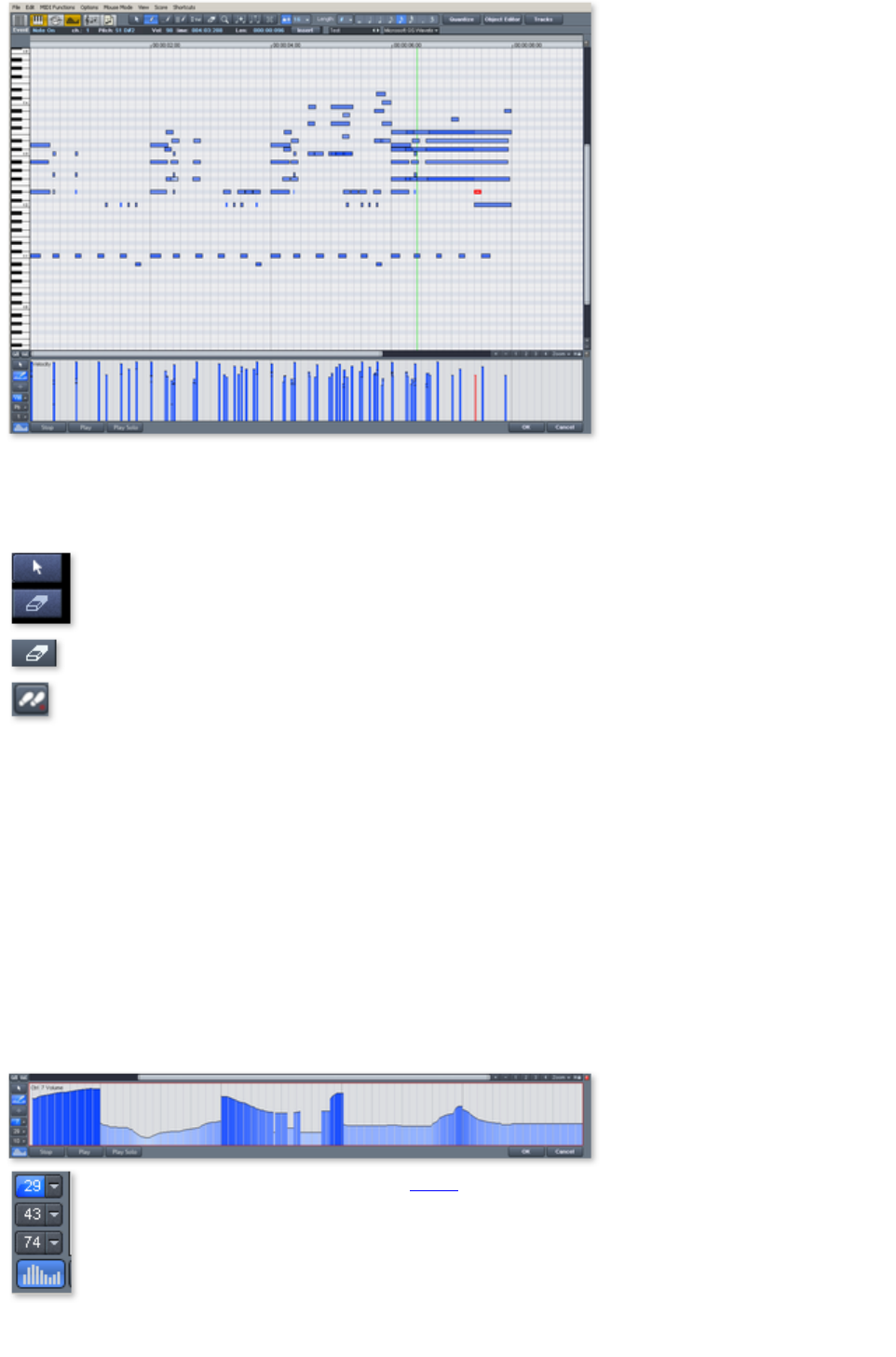 - Editing events: Piano roll