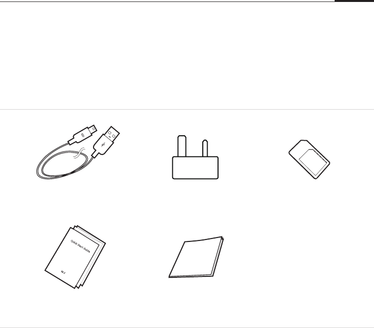 1 Place all accessories (such as SIM or USIM card, power adapter, etc.) out of