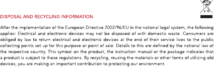 provisions of the R&TTE Directive 1999/5/EC. The complete declaration of conformity is available on request via