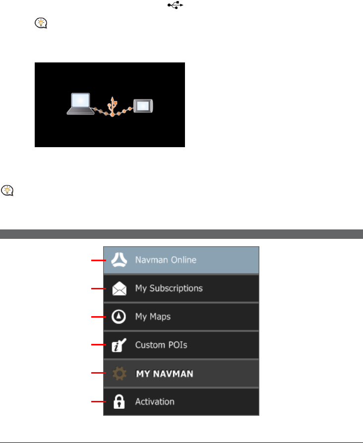 To charge your Navman from the mains power, use the home charger (may be sold separately) supplied by Navman as an