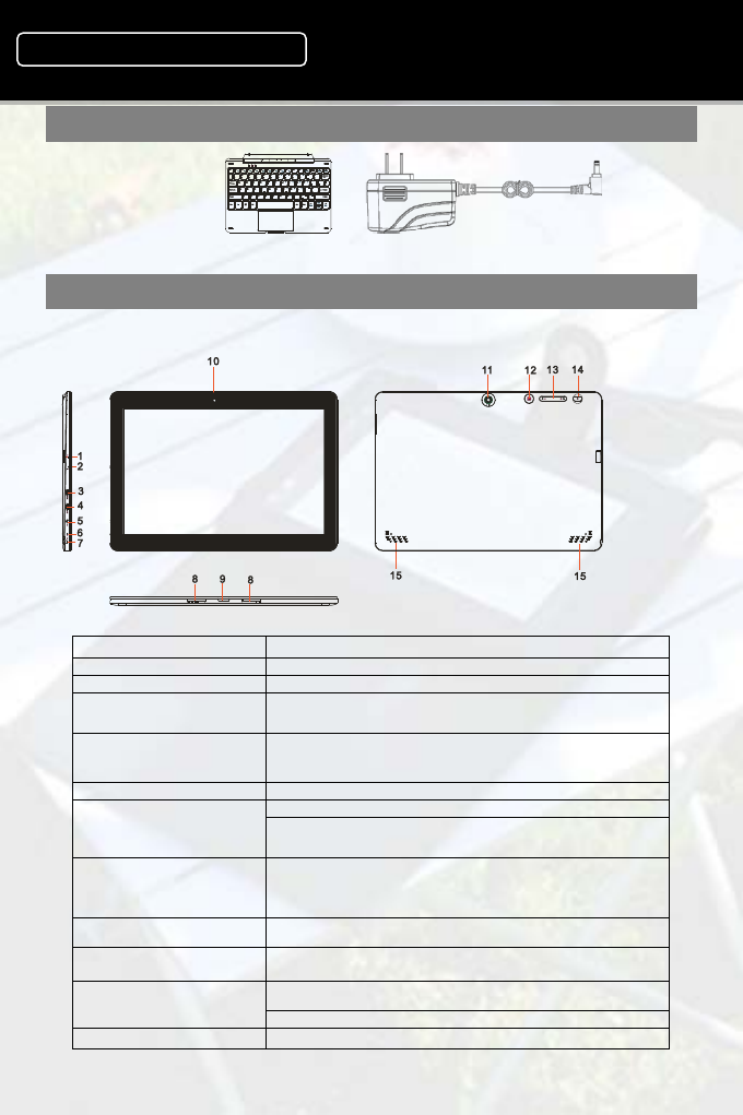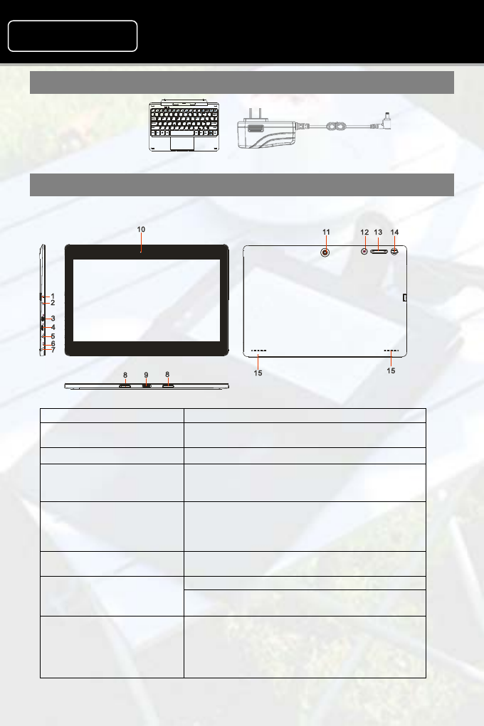 14. Power button Press and hold to turn the tablet on or off.