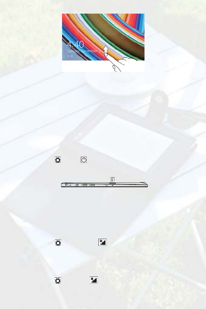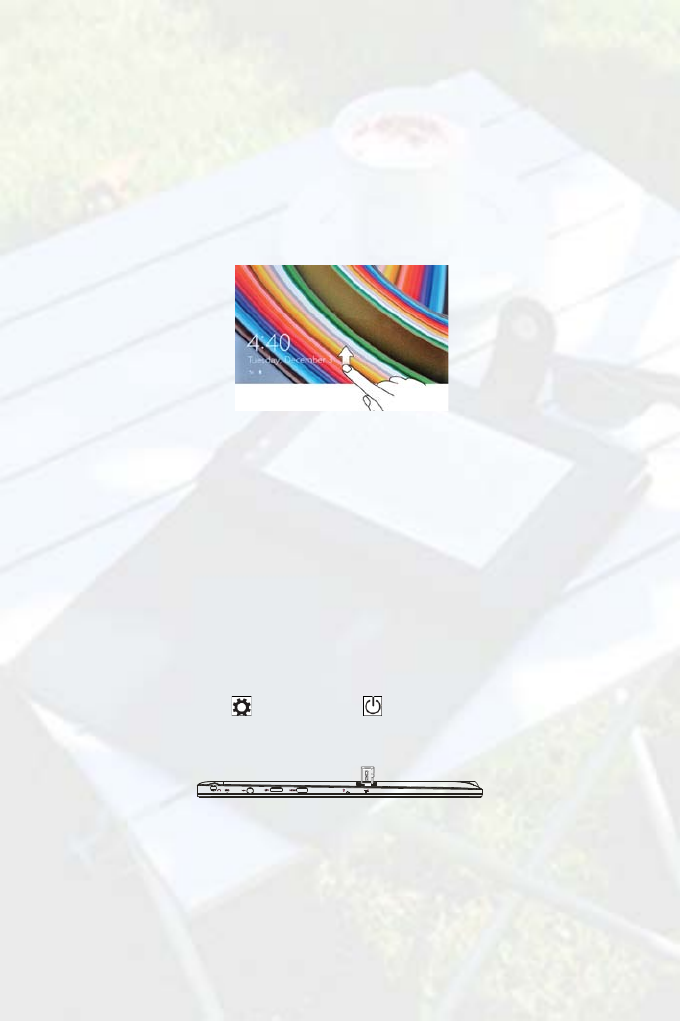 1. Press and hold the Power button for 2 seconds to turn on your tablet. The lock screen