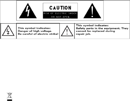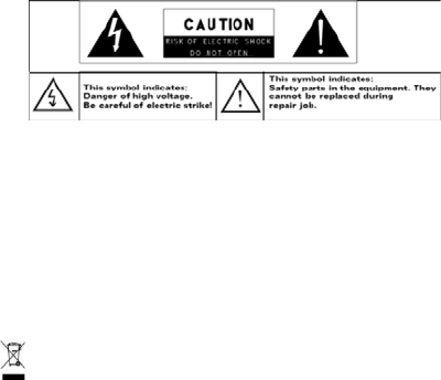 - To reduce the risk of electric shock, do not remove the cover (or back) as