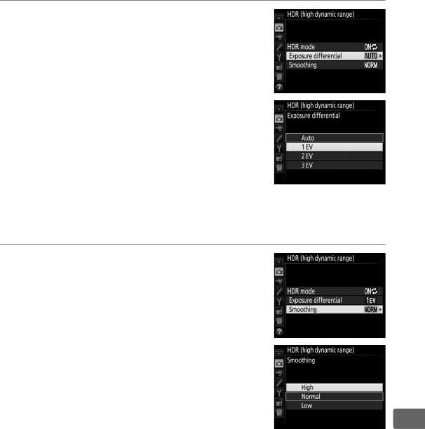 available in the camera menus.