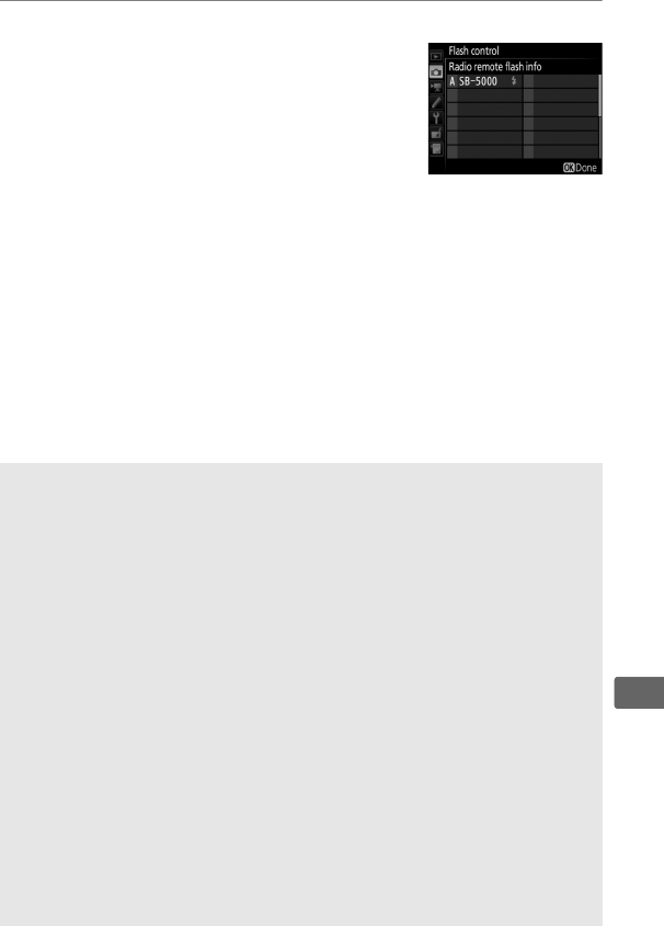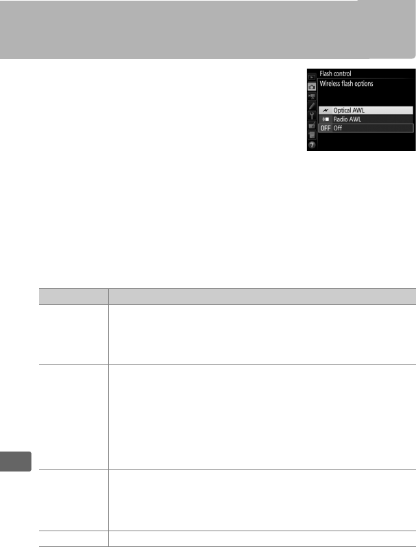 Wireless flash options.......................... 204
