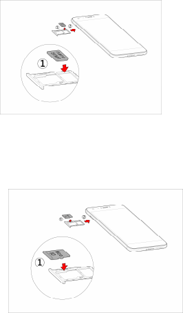 2. Insert the SIM card correctly in the card slot(s) (See figure below)