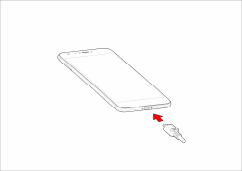 Connect the charger to a power outlet and the micro USB connector to the phone’s USB port.