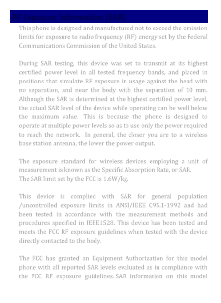 head is 1.13 W/kg, for usage near the body is 1.08 W/kg.