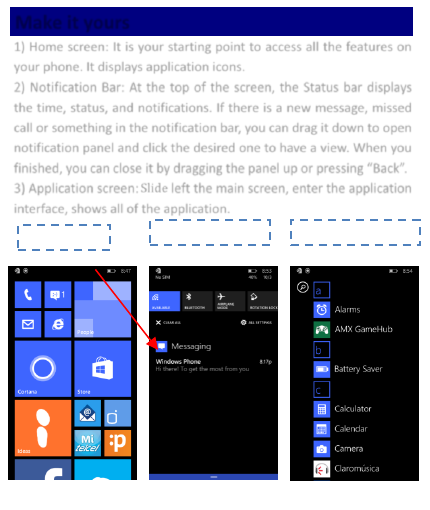 2) Notification Bar: At the top of the screen, the Status bar displays