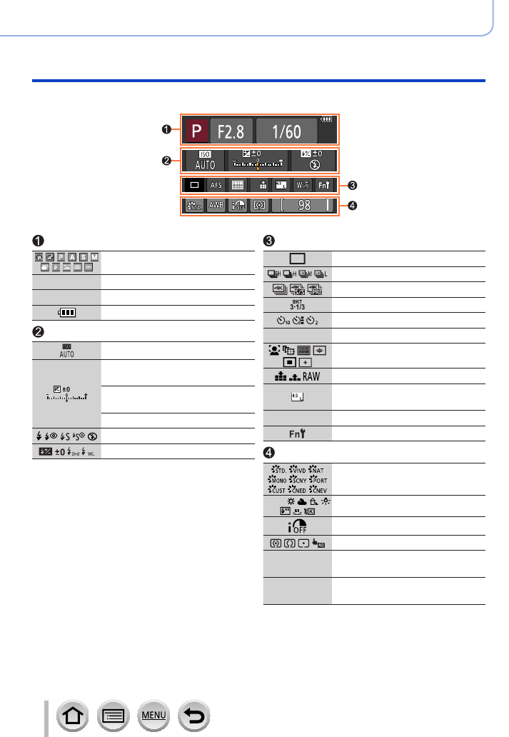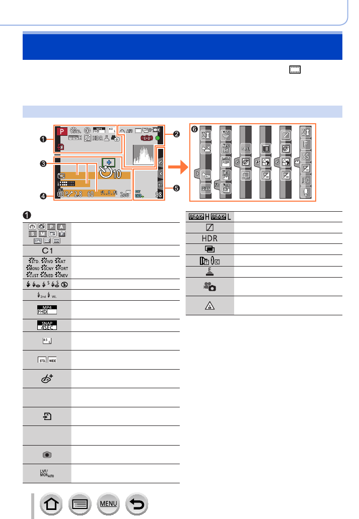 - Displaying the appropriate screen for specific recording conditions
