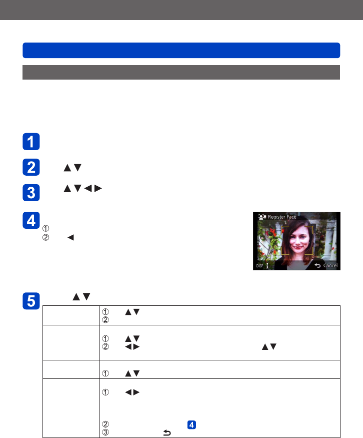 If names or birthdays are set in [Baby] Mode or in the [Face Recog.] function, keep in mind that the