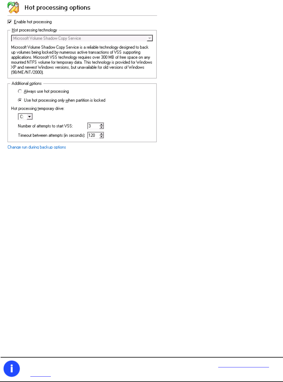 The problem is that the Microsoft VSS service is set as the default Hot Processing mode in the program. But this