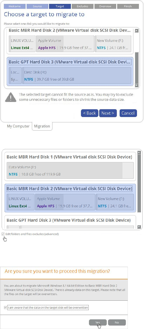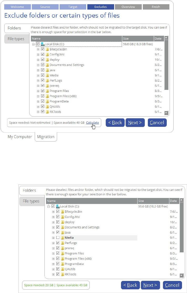 Allows the user to exclude data during the setup in order to fit in to the destination disk