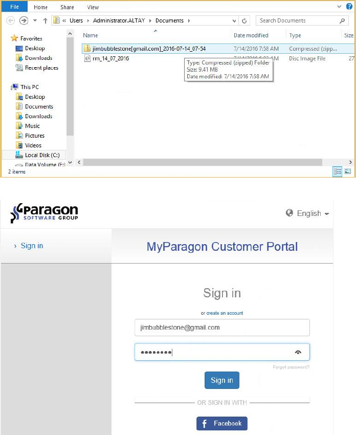 4. Use the link on the first page of the wizard to sign in to MyParagon Customer Portal.