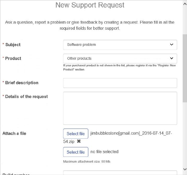 5. Fill out the ticket request form, attach the prepared logs package, then click Post request. That’s all. Our