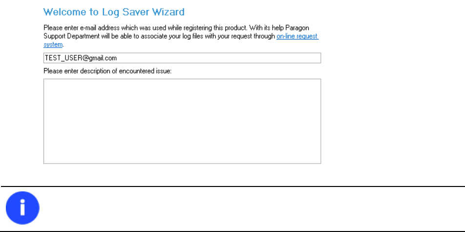 The program enables to simplify the procedure of sending support requests to the Paragon Support Team. In case of