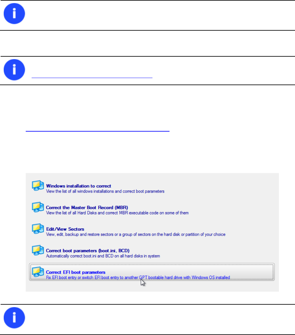 4. Select Correct boot parameters… to let the wizard fix BCD in all found Windows installations.