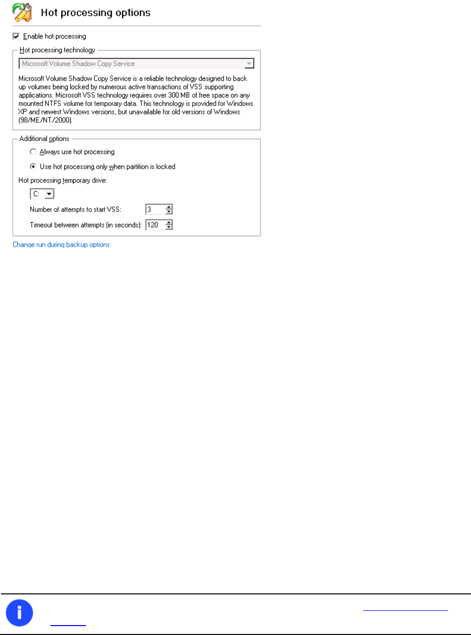The problem is that the Microsoft VSS service is set as the default Hot Processing mode in the program. But this