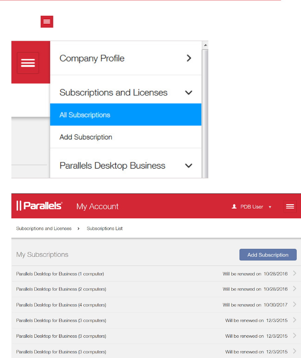 - Parallels Business Account, Subscriptions and Licenses