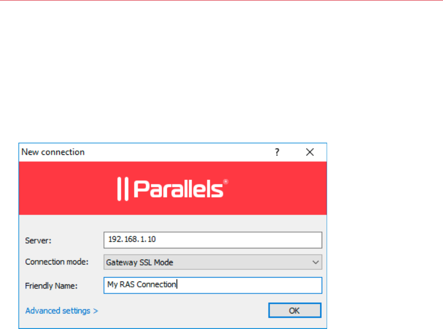 manually create a Parallels Remote Application Server connection. The automatic configuration