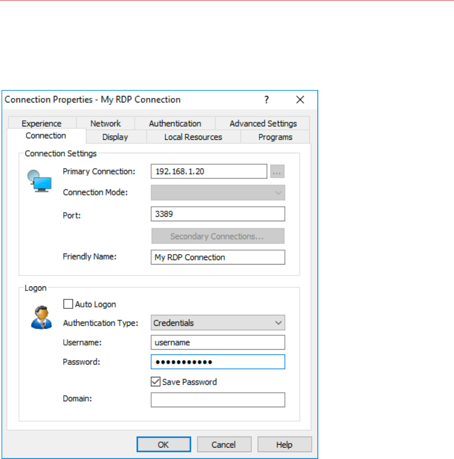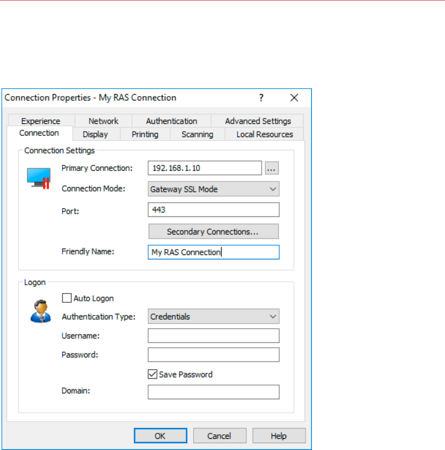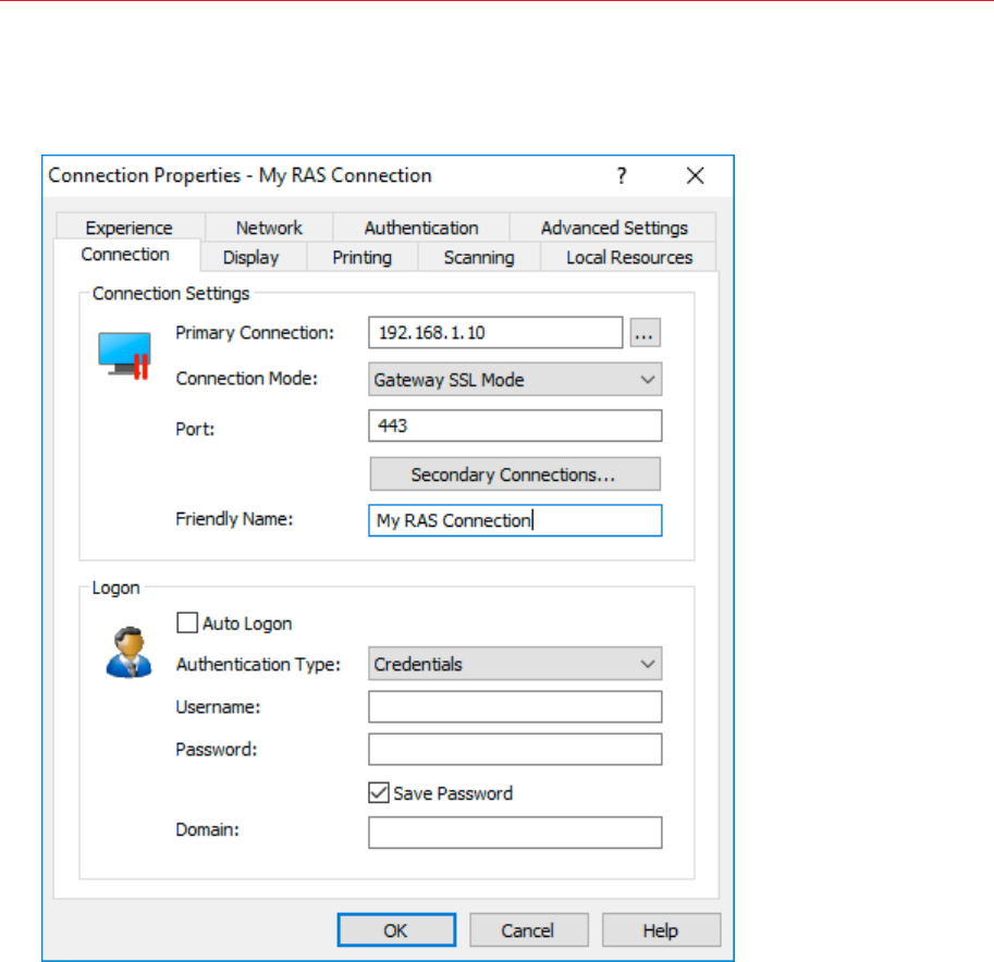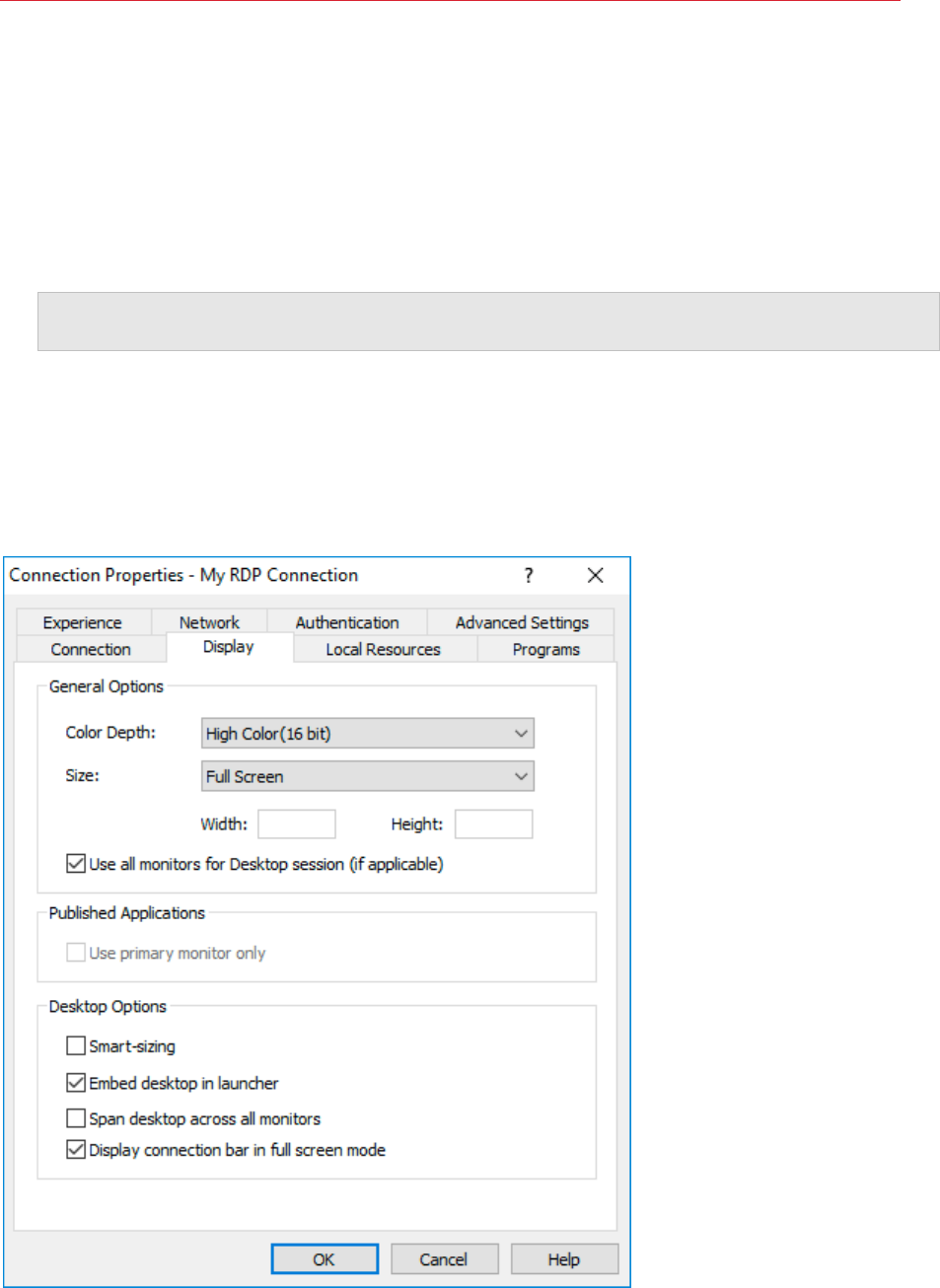 • Smart Sizing. If enabled, smart-sizing will resize the remote desktop so it fits the available area.