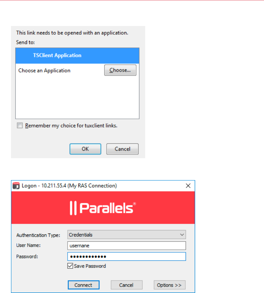 • A link to automatically configure Parallels Client on your computer, so you can connect to the