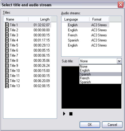 Select Title And Audio Stream dialog