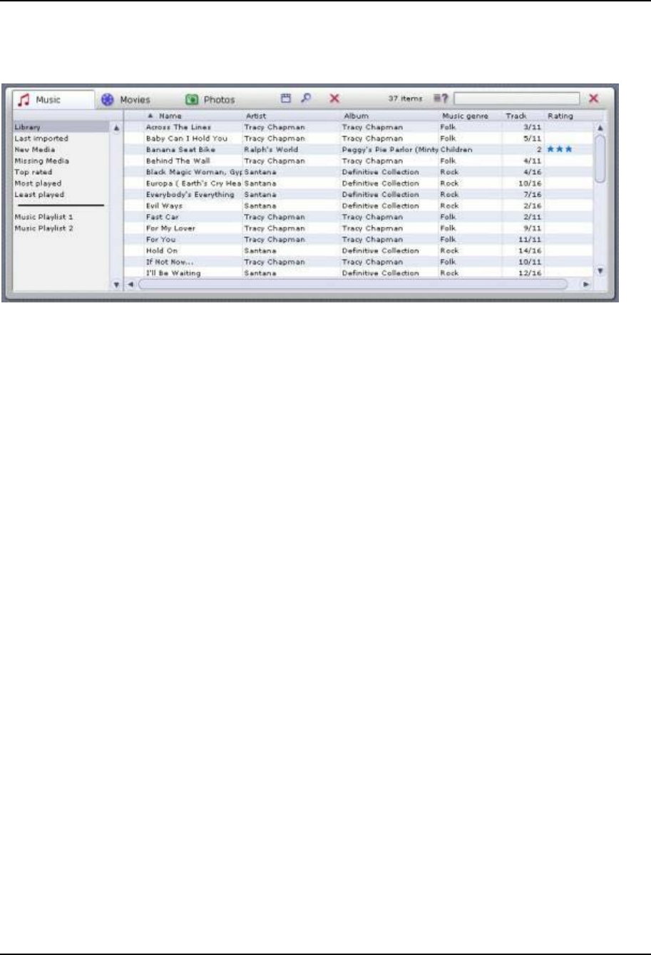 The Media Library with the Music, Movies and Photos tabs, located in the