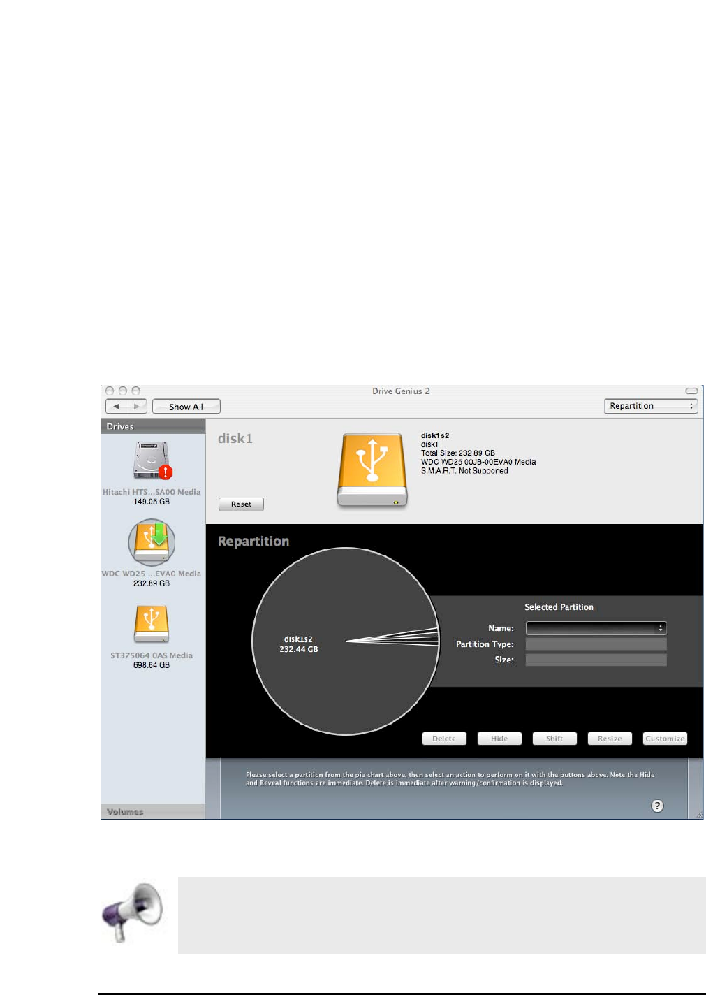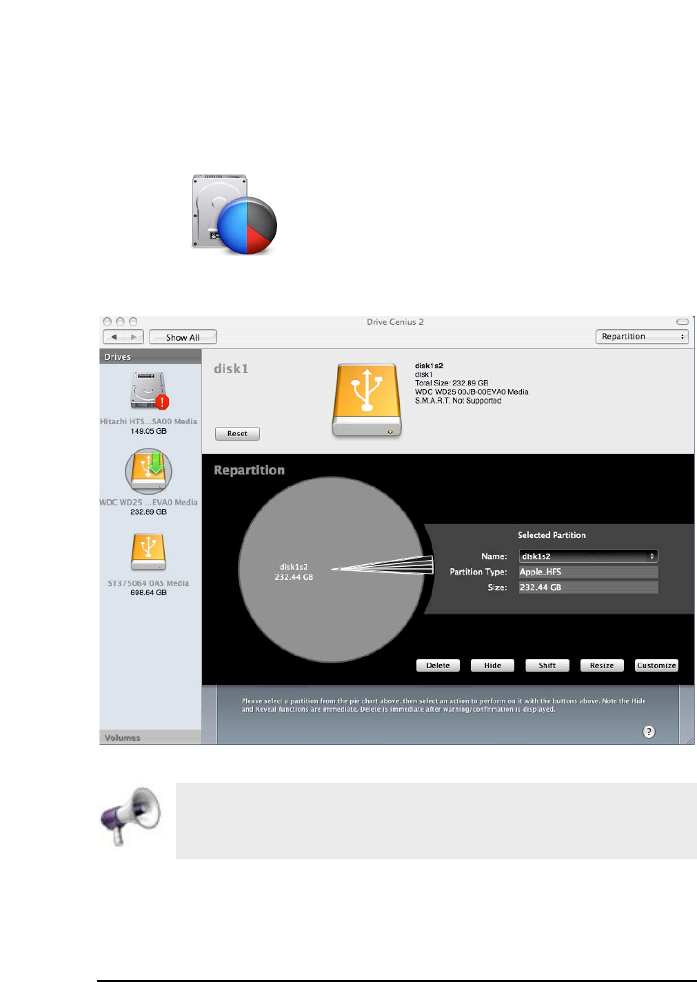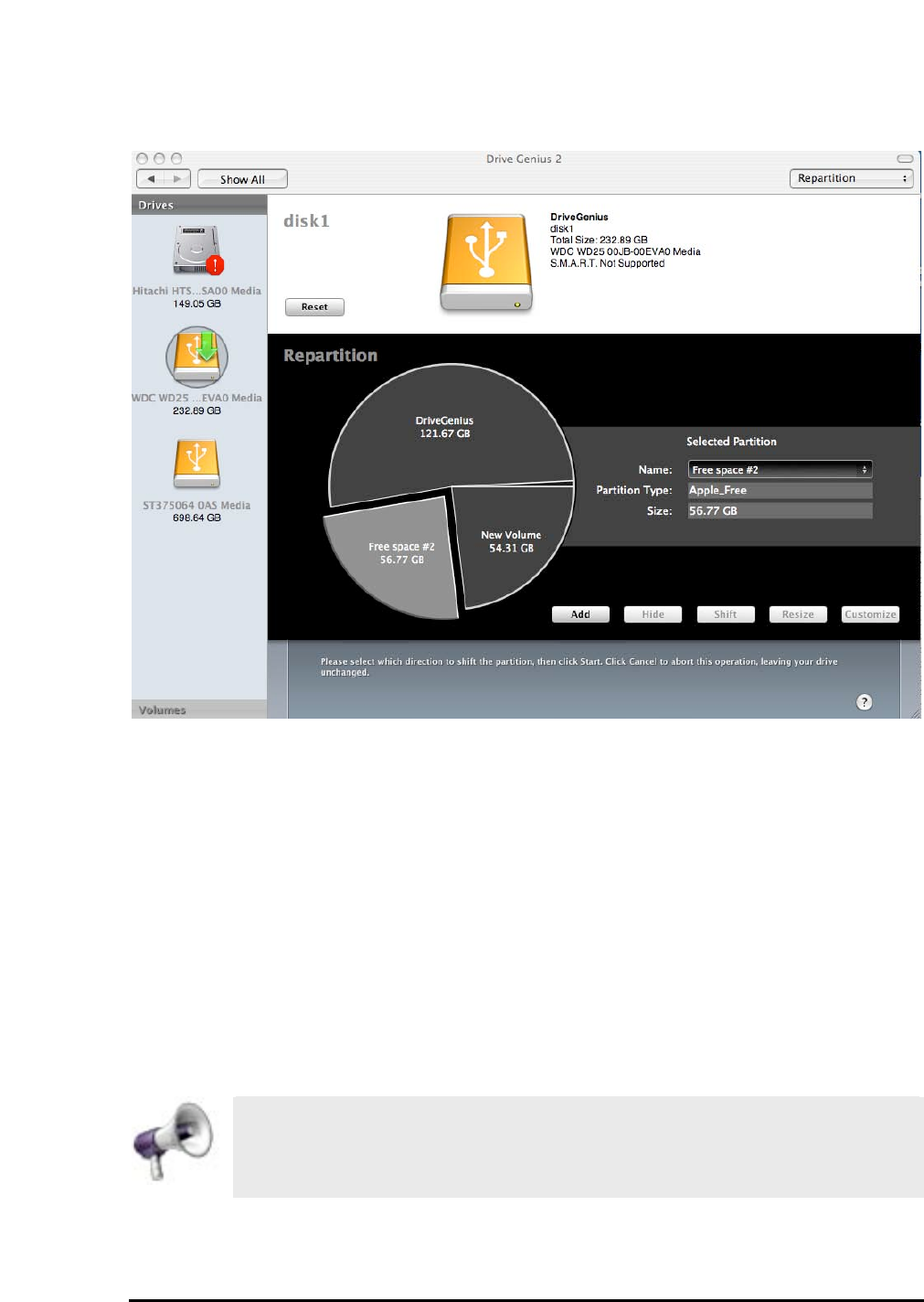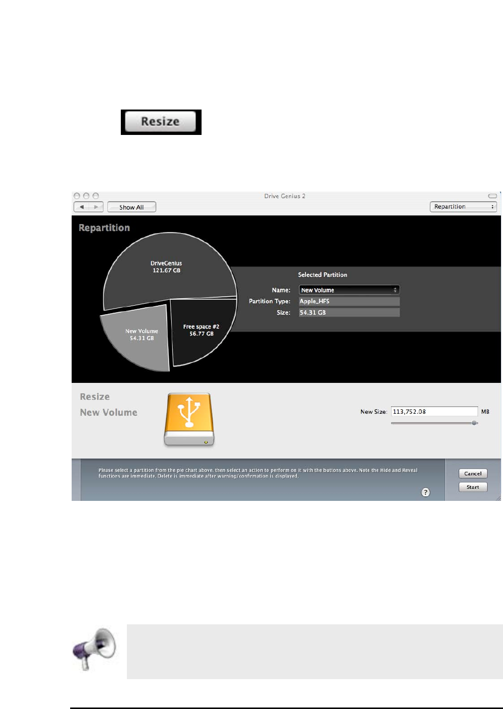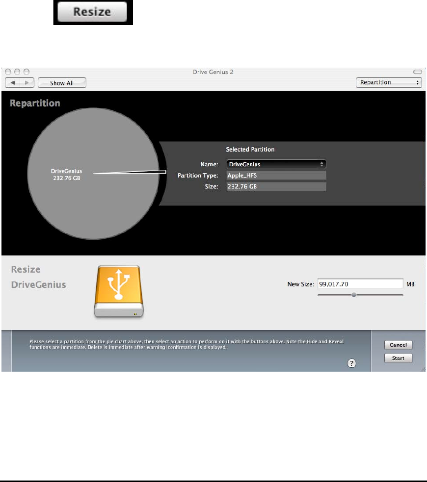 The powerful repartitioning feature enables you to resize your drive without