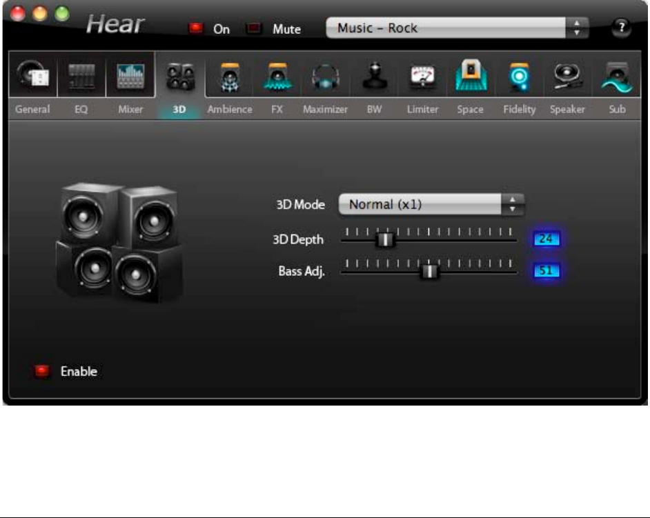 the back. While the effect utilizes only two speakers, the resounding frame is emulated in 3D