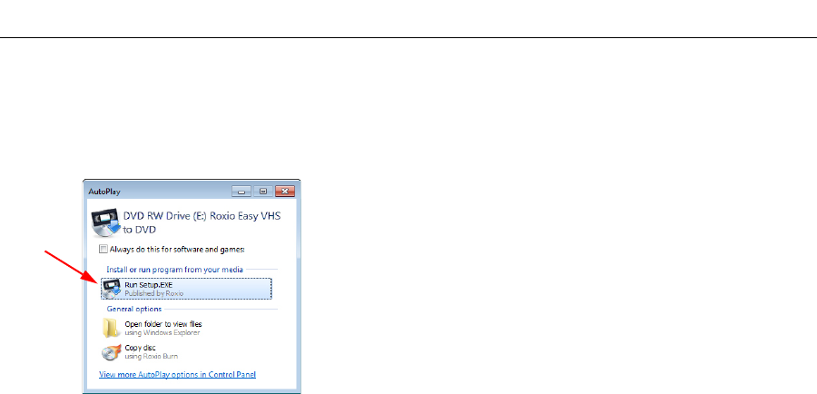 3If a Windows Autoplay dialog does not appear, navigate to the Easy VHS to DVD folder on the disc, and double-click the
