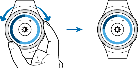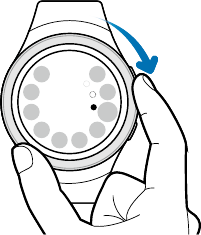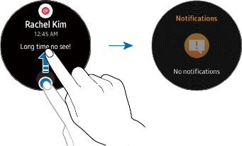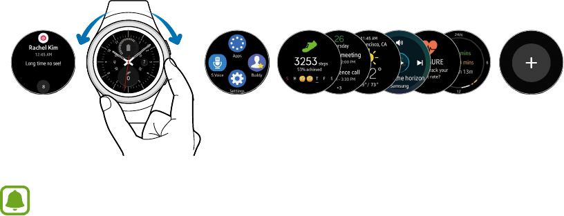 • The Gear vibrates and the screen turns on. Drag