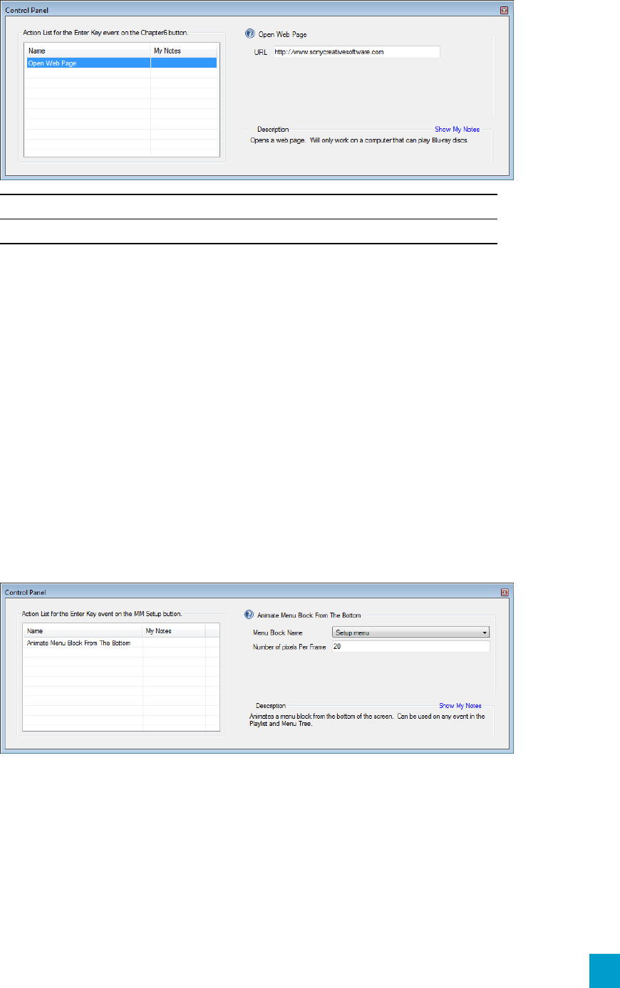 - Animation actions