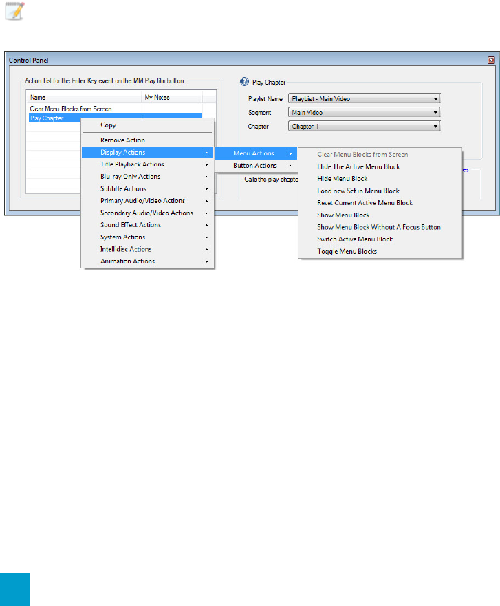 - Display menu actions