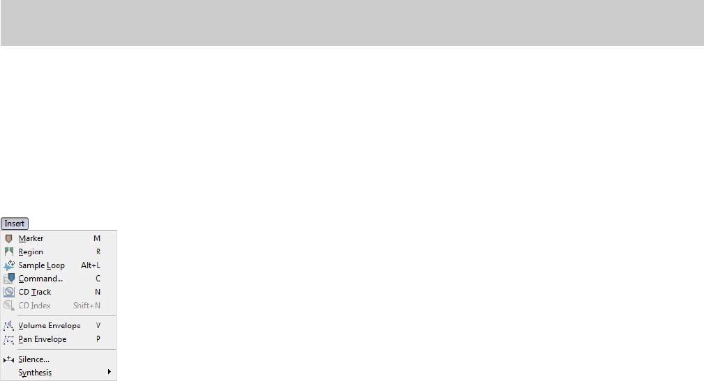 A new Insert menu has been added to include such commands as Marker, Region, and Silence.