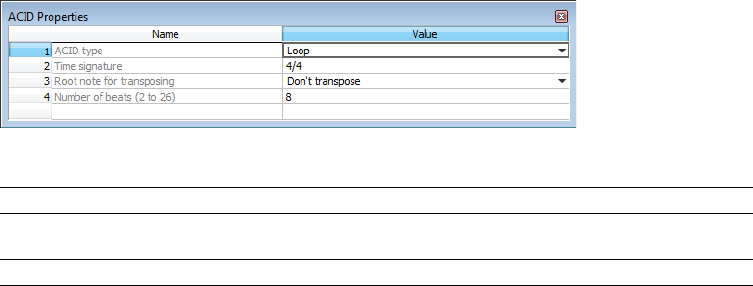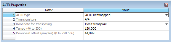 - ACID Properties window (Ctrl+Alt+M, 3)
