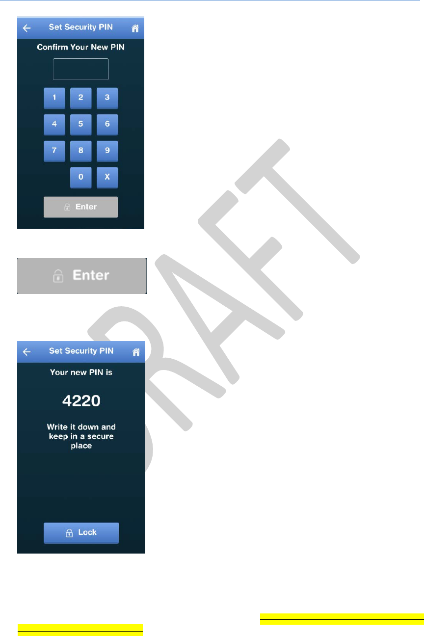 In the Set Security PIN screen, touch the 4 numbers on the screen for your