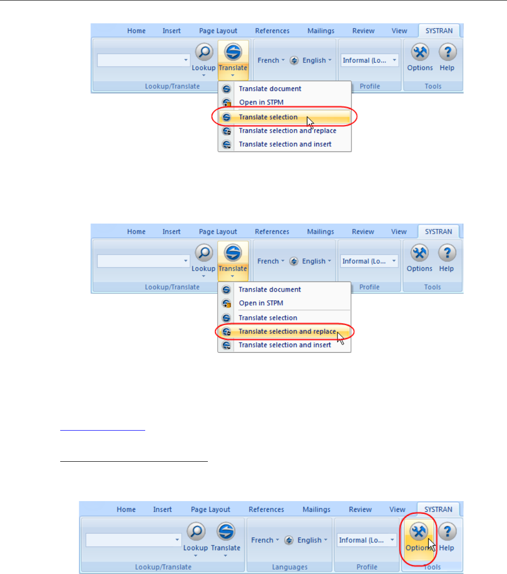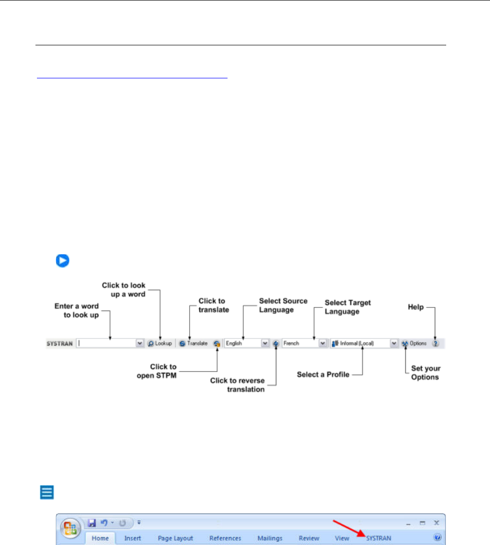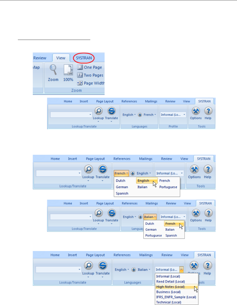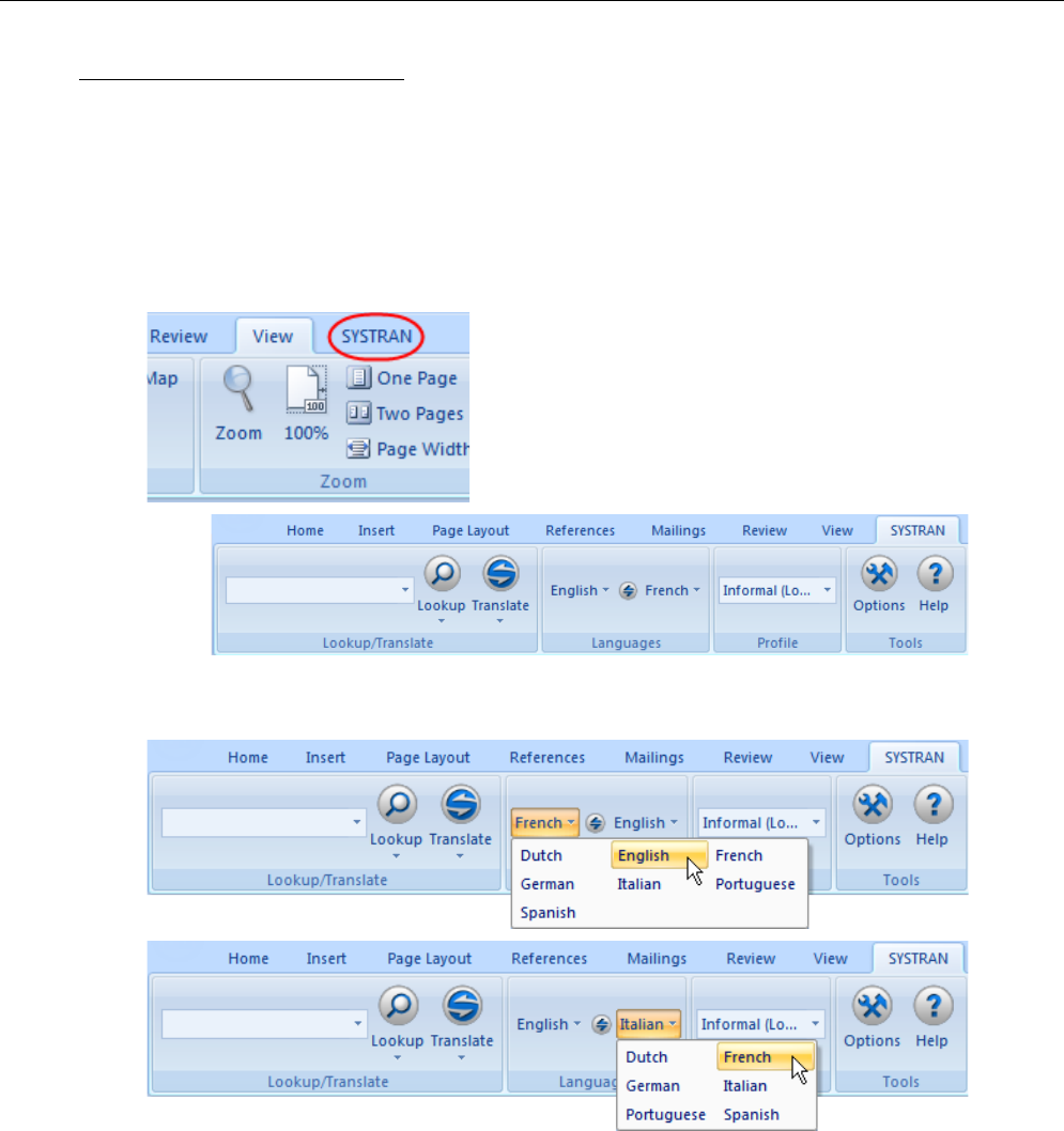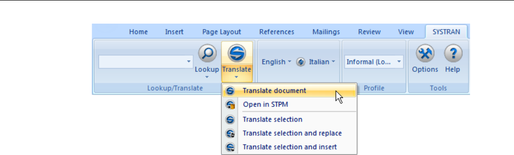 The SYSTRAN tab group (Office 2007 and Office 2010) ................................................. 69!