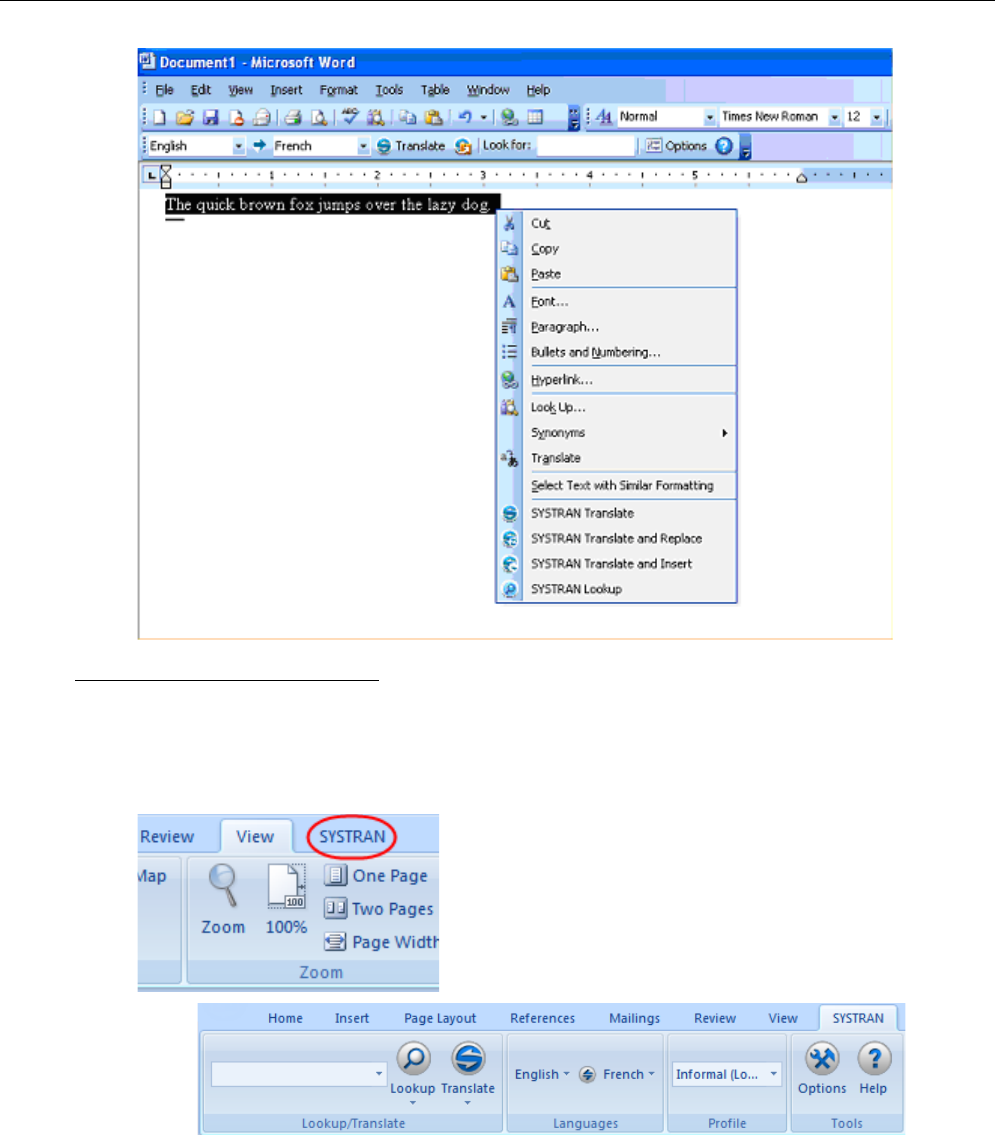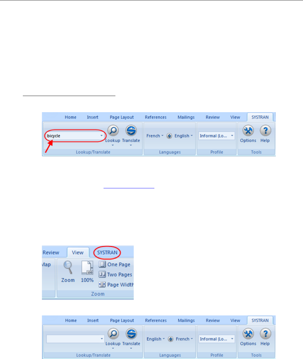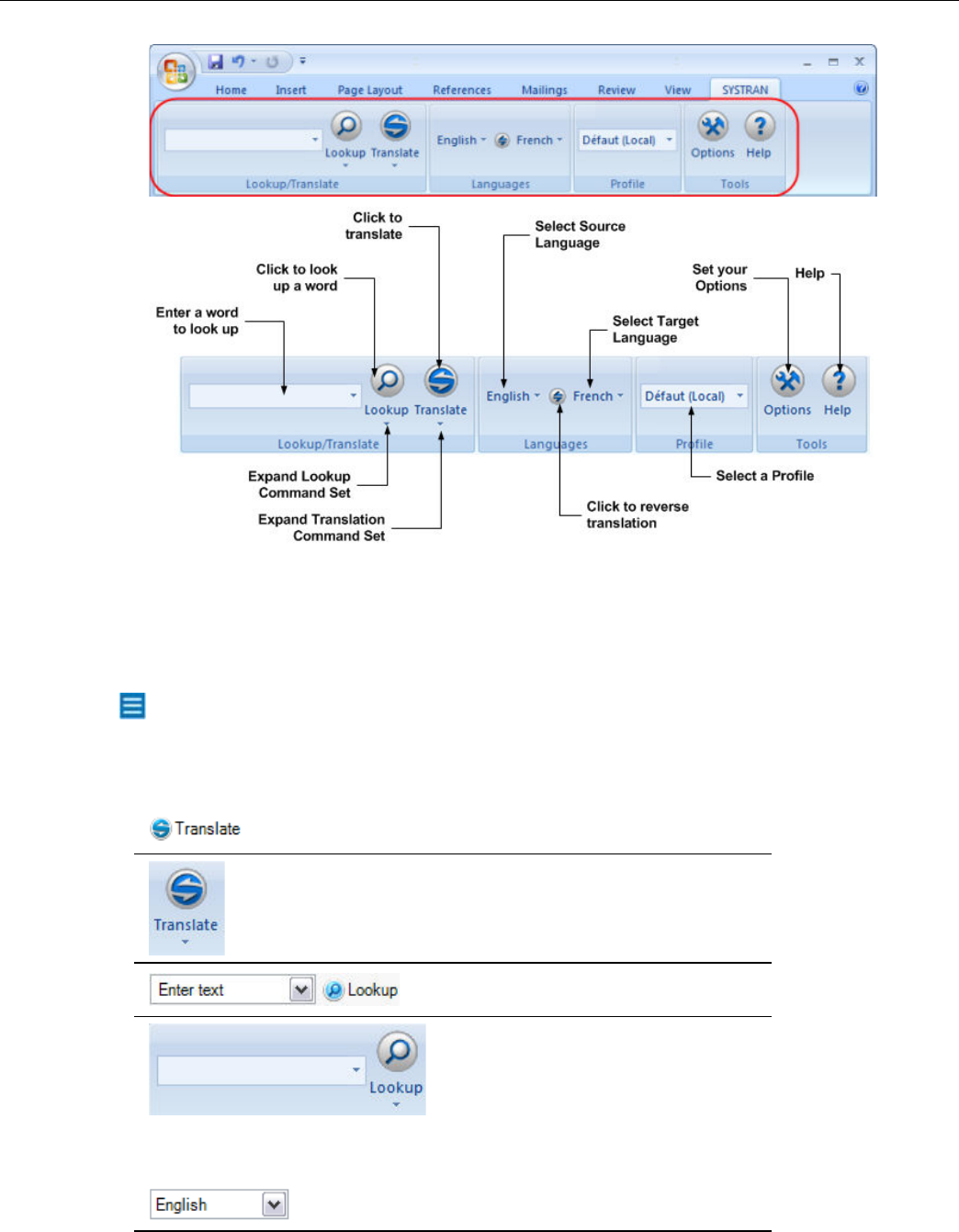 The SYSTRAN tab group (Office 2007 and Office 2010) ................................................. 69!