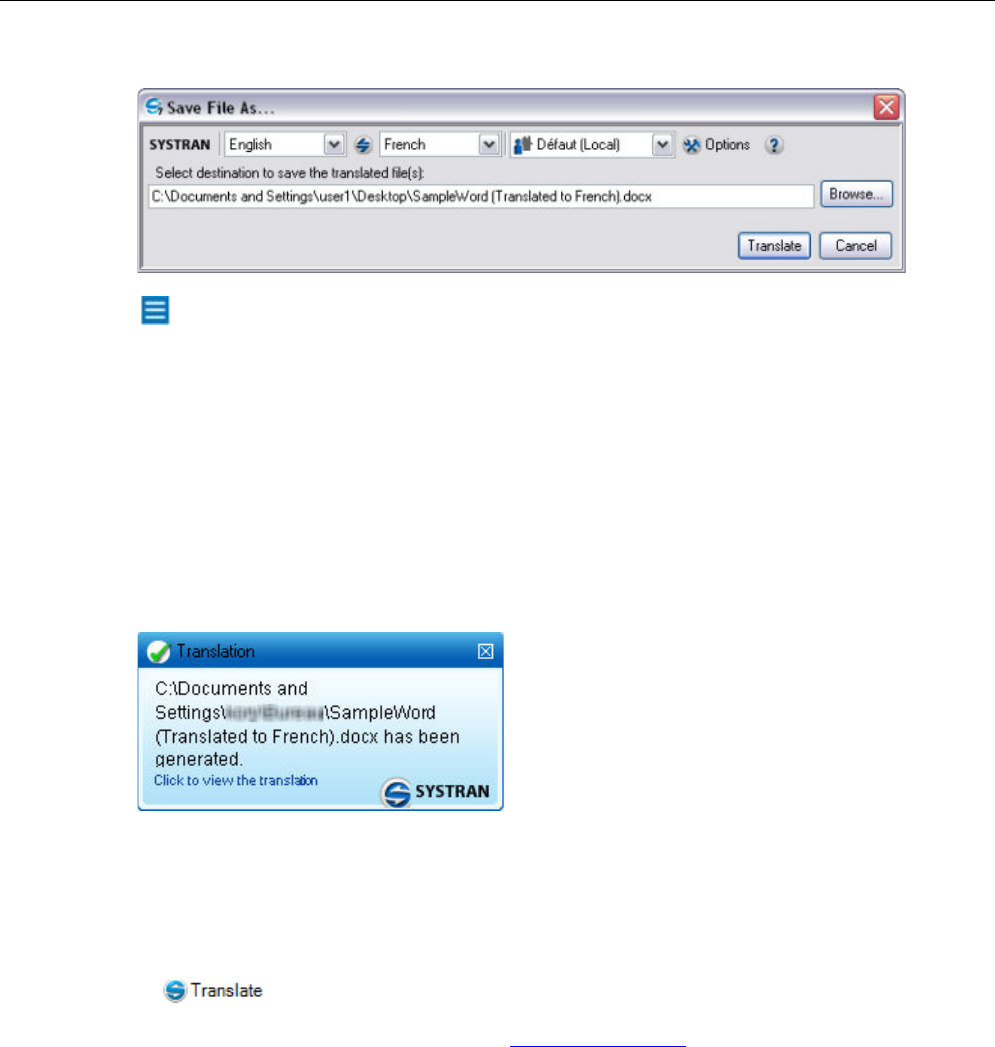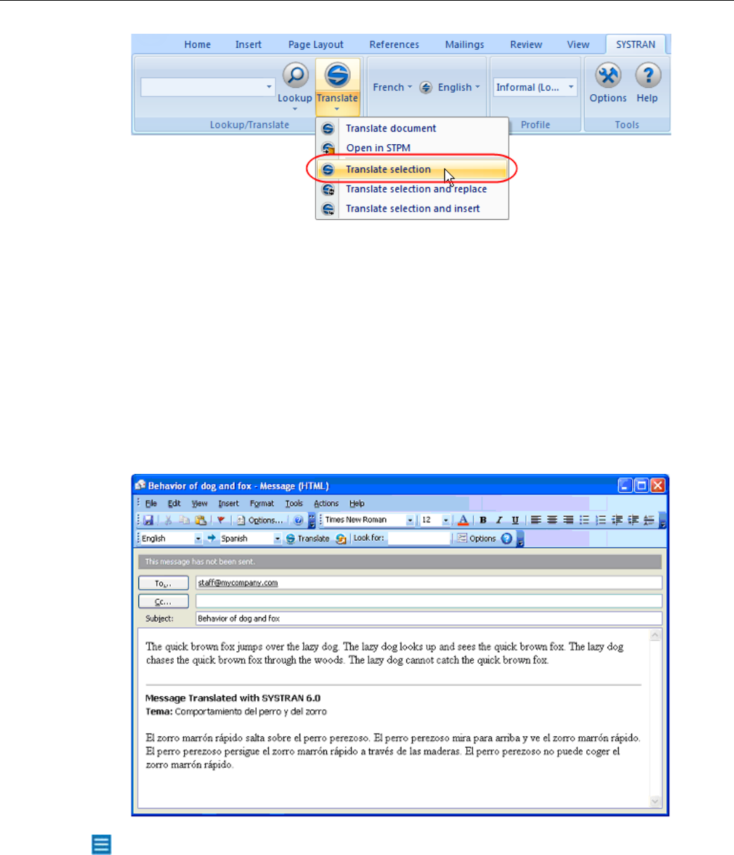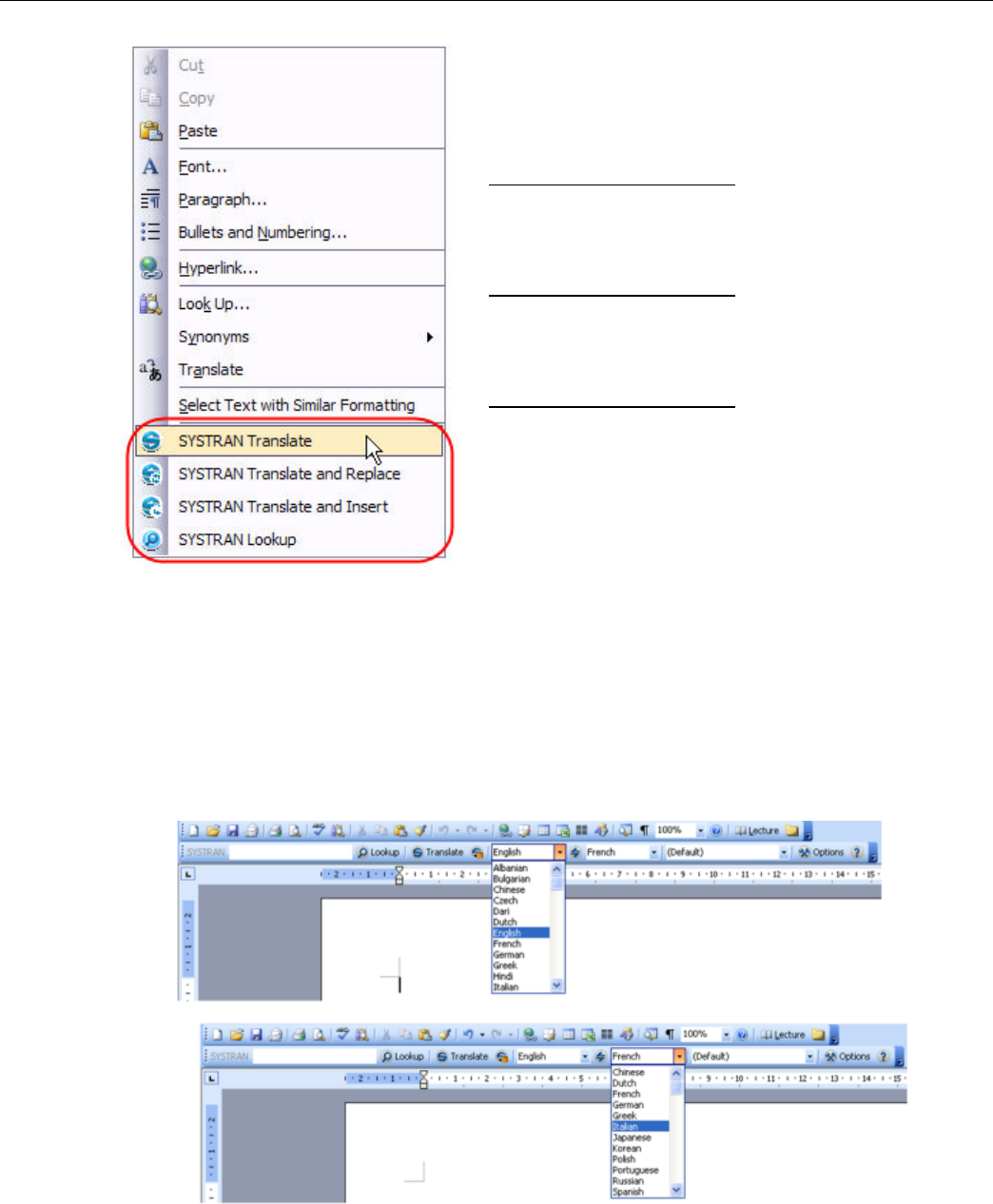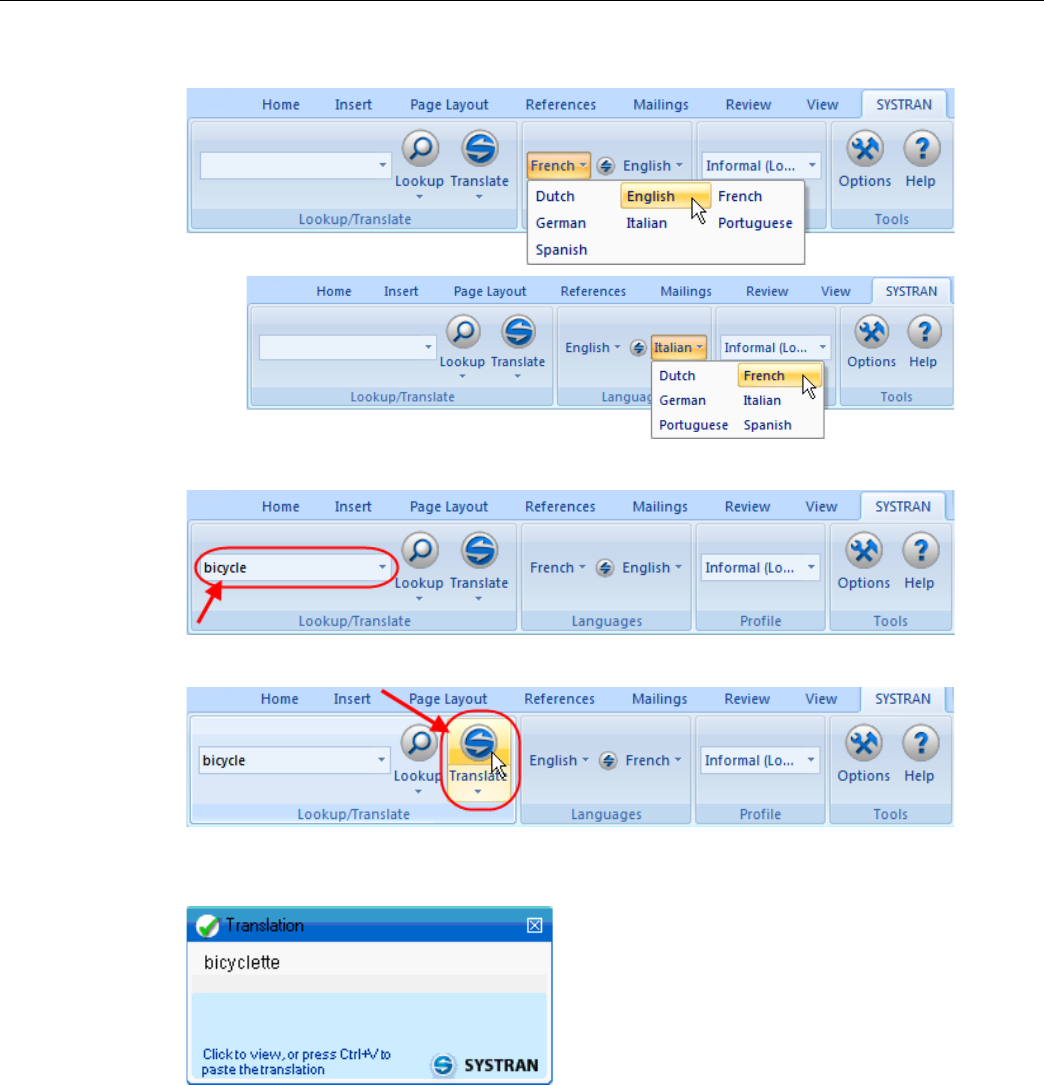 The SYSTRAN tab group (Office 2007 and Office 2010) ................................................. 69!