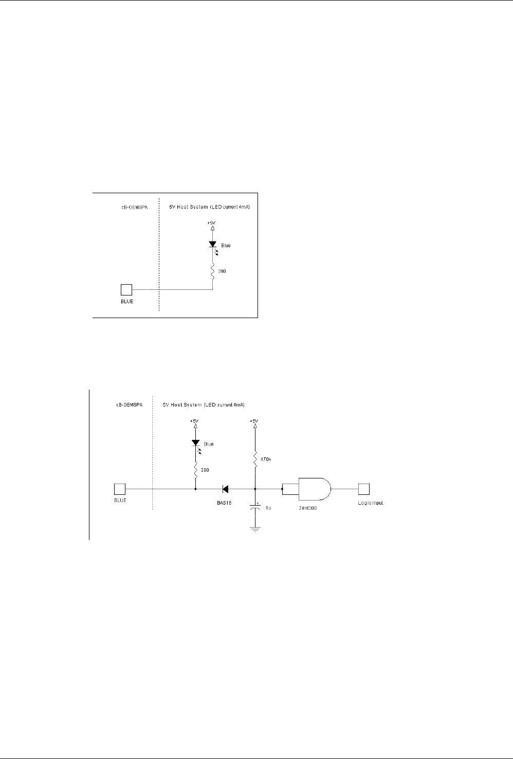 Figure 18: A blue LED can be connected directly to the module if the LED current is below 4mA. A high