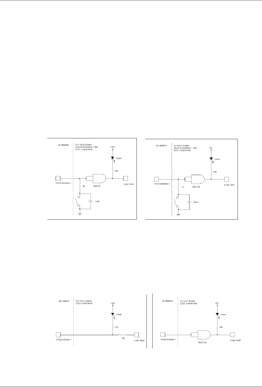 - GREEN - Logic green LED signal (see Chapter 3, Table 14). Becomes valid 500ms af-