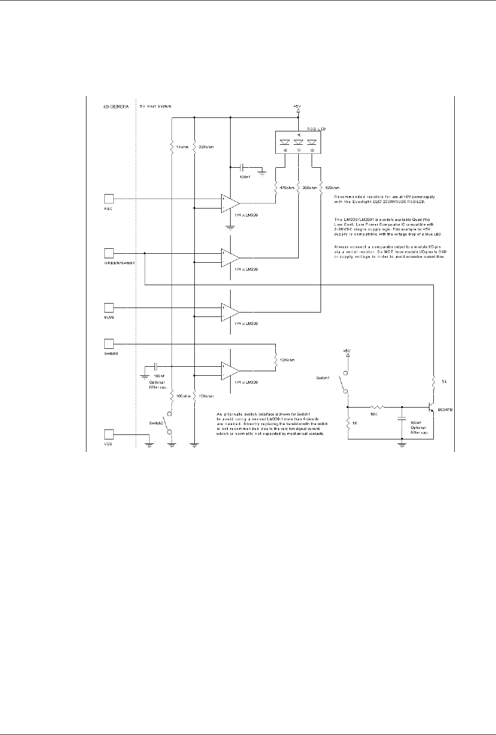 This is a complete 5V host system interface example with an RGB LED and two switches