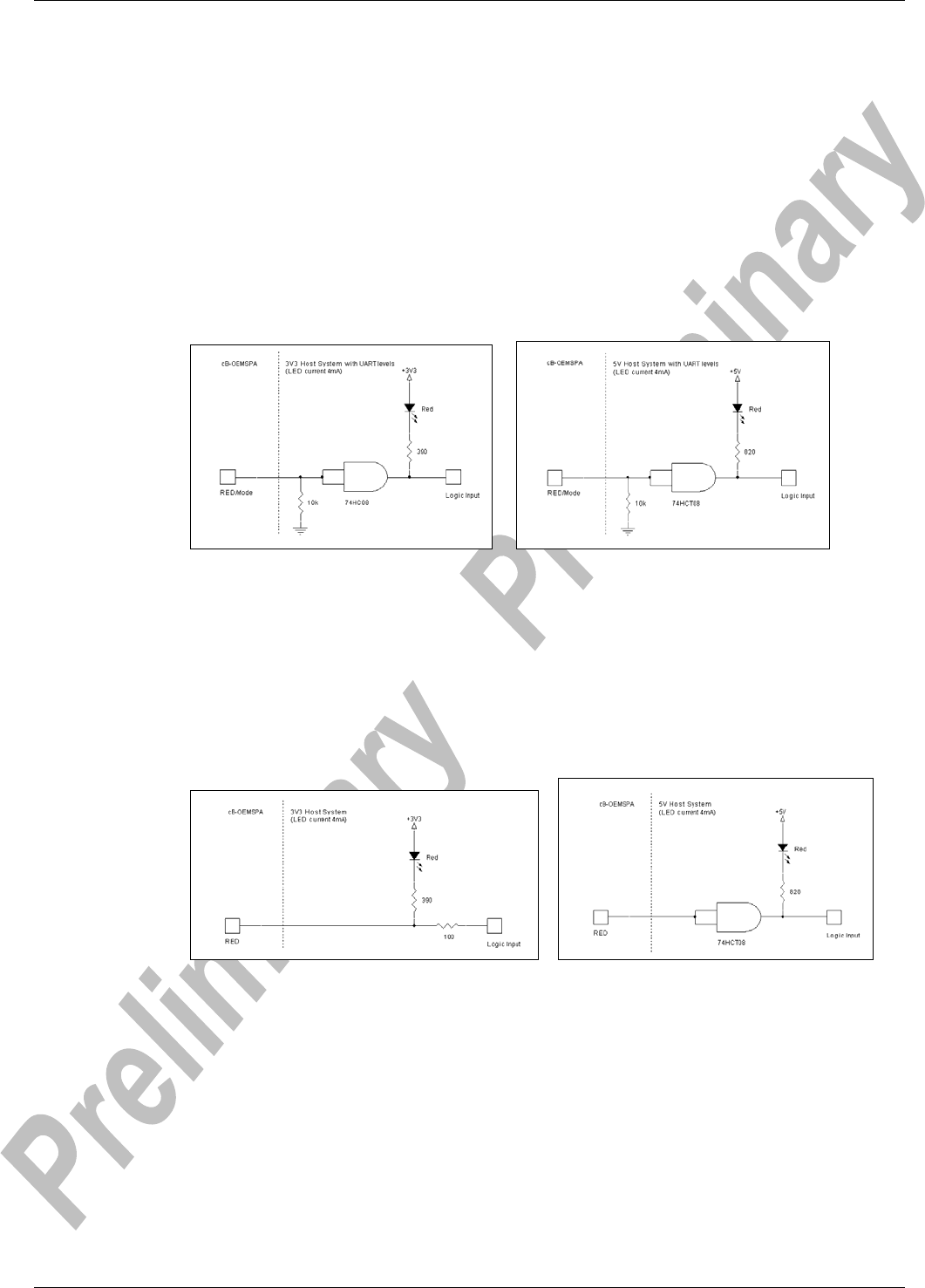 with a red LED in a 3.3V host system. The status of