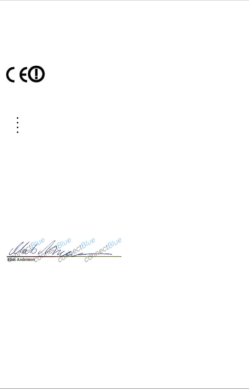 Any changes or modifications NOT explicitly APPROVED by connectBlue AB could cause the module to cease to